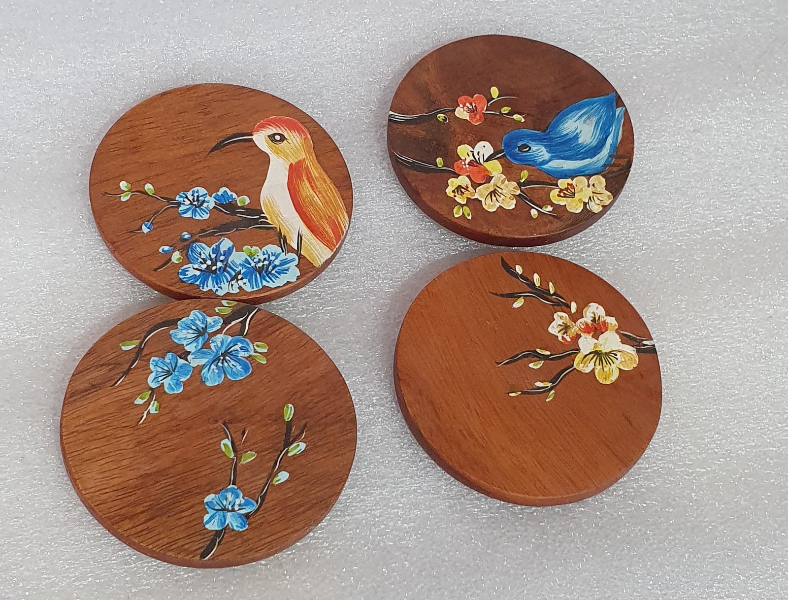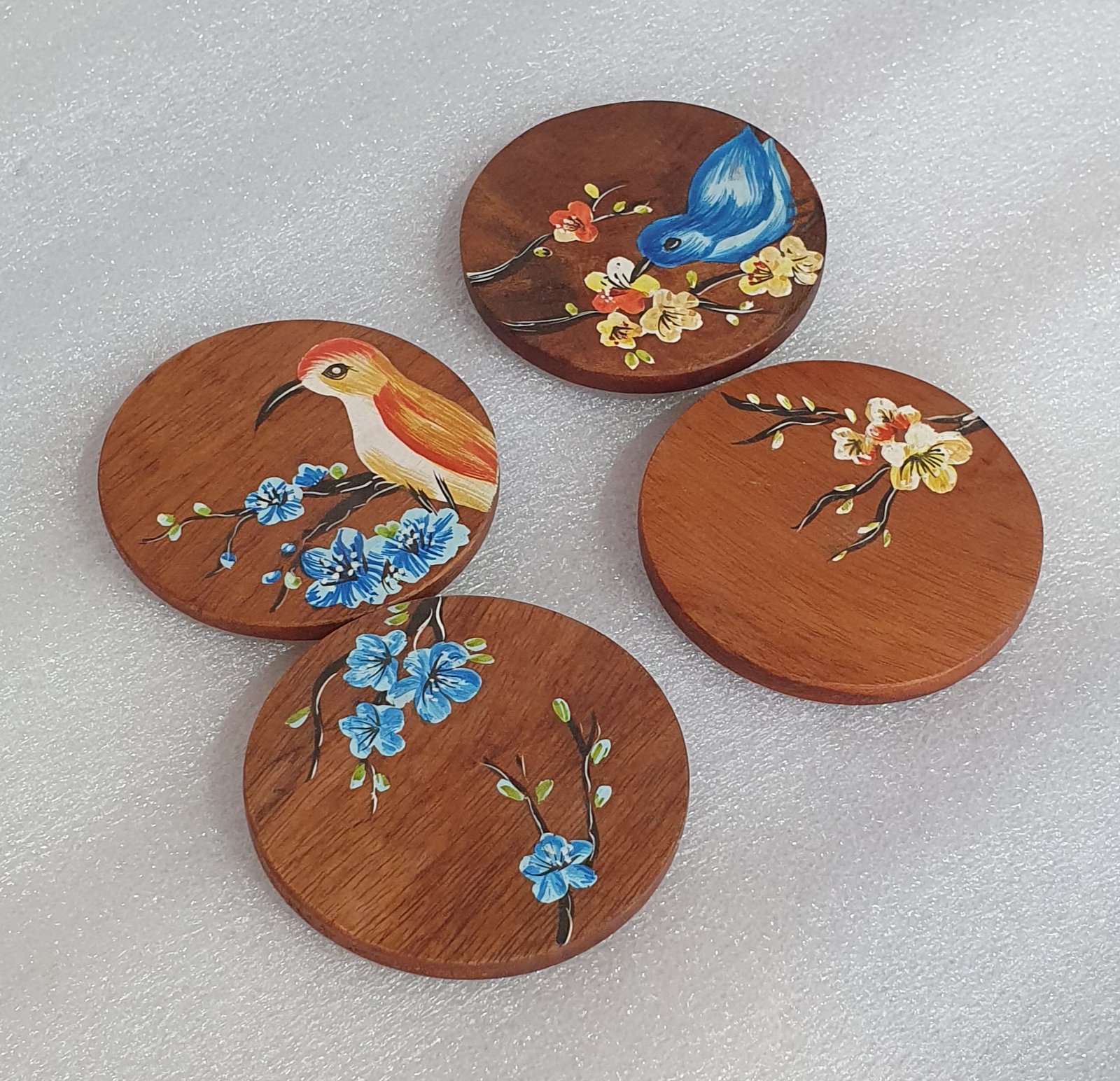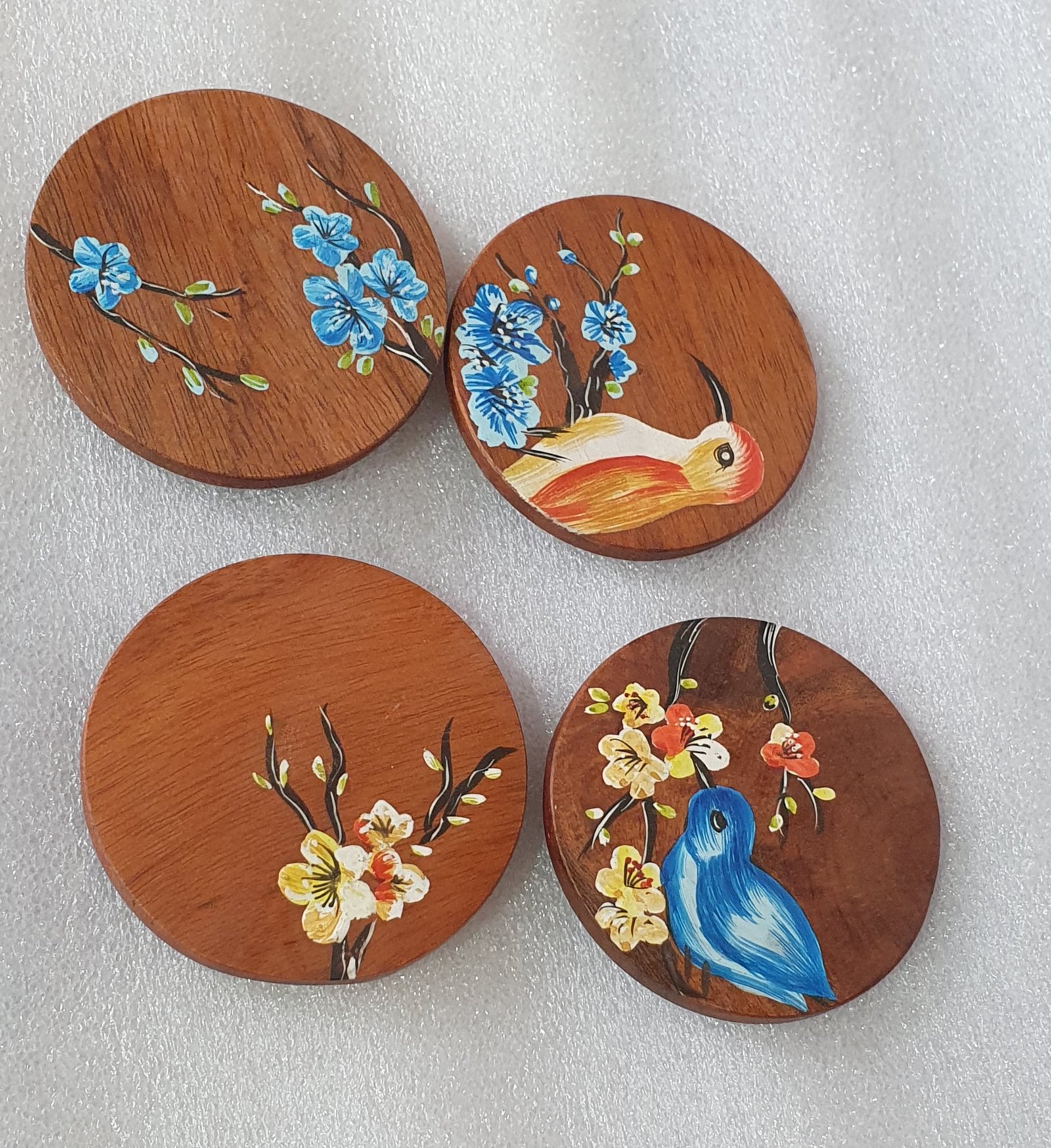 Made from high-quality wood, these coasters are durable, sturdy, and long-lasting. The smooth finish ensures a refined feel, while the hand-painted design makes each piece unique and eye-catching.