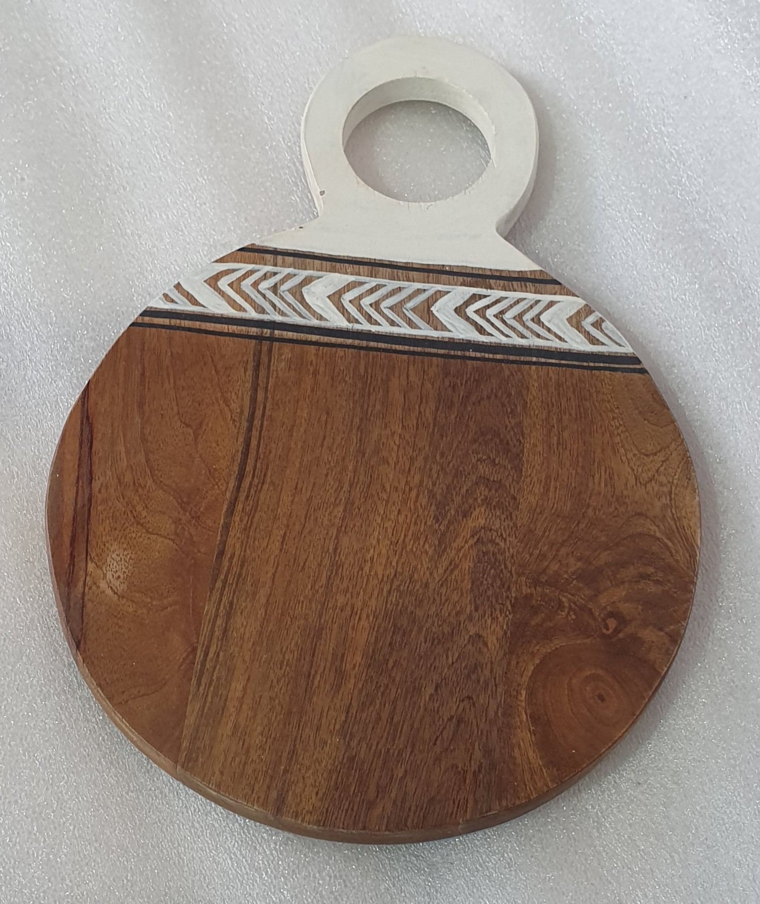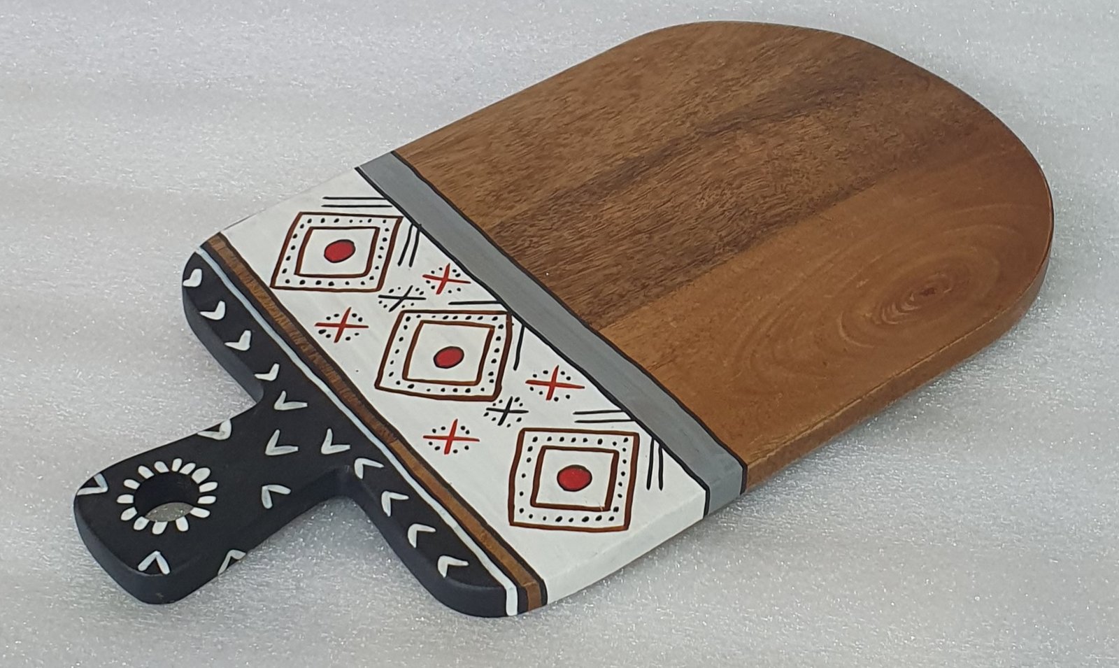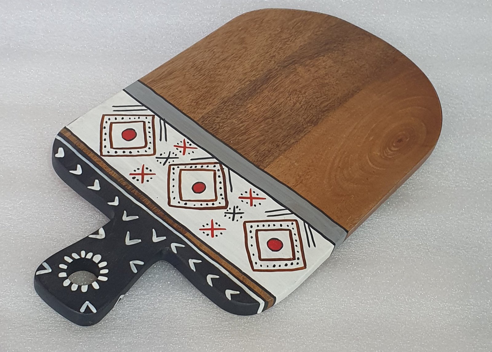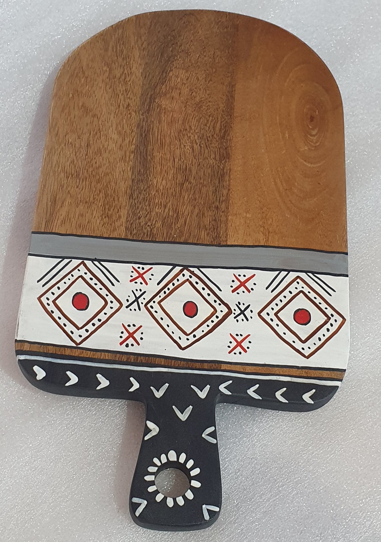 Handcrafted Wooden Serving Board with Ethnic Hand-Painted Design