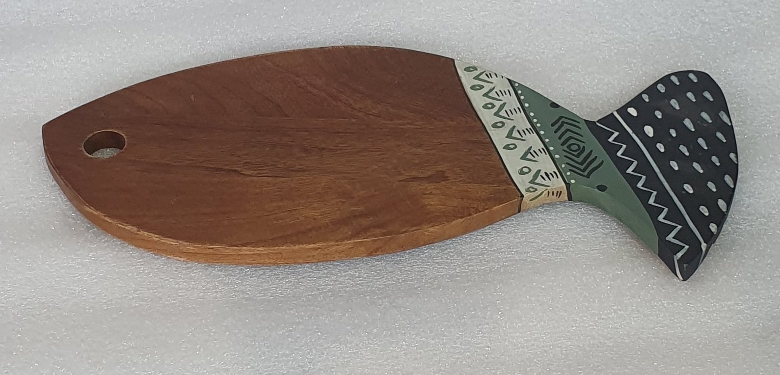 Beautiful handcrafted wooden serving board with a unique ethnic hand-painted design. Perfect for serving snacks, cheese, and appetizers while adding a stylish and traditional touch to your kitchen and dining setup.