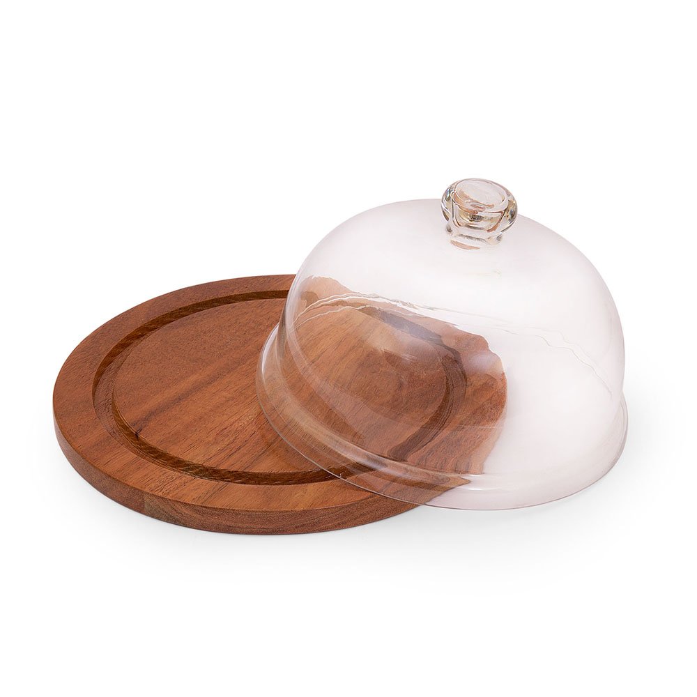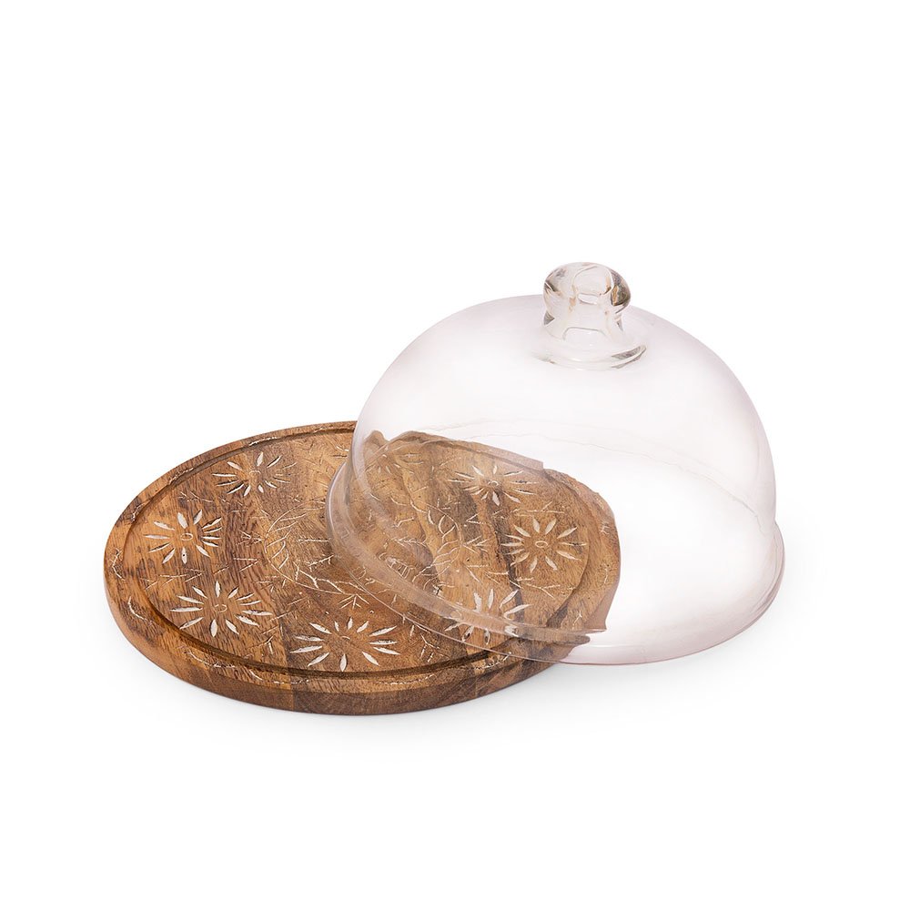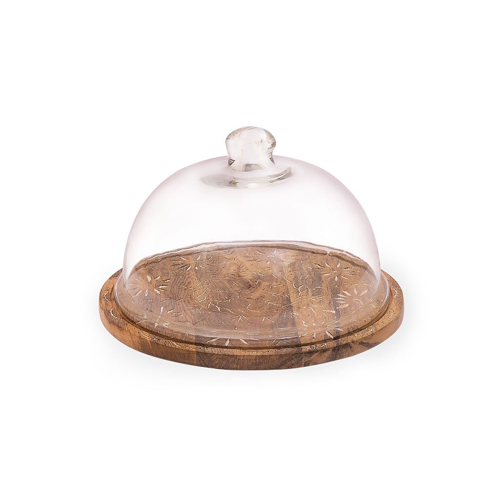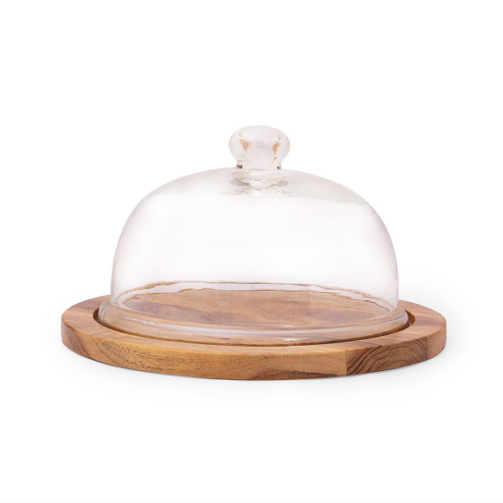 The sturdy wooden base provides a stable and durable platform, while the transparent glass dome helps keep your food fresh and protected from dust. Its classic combination of natural wood and clear glass makes it suitable for both modern and traditional settings.