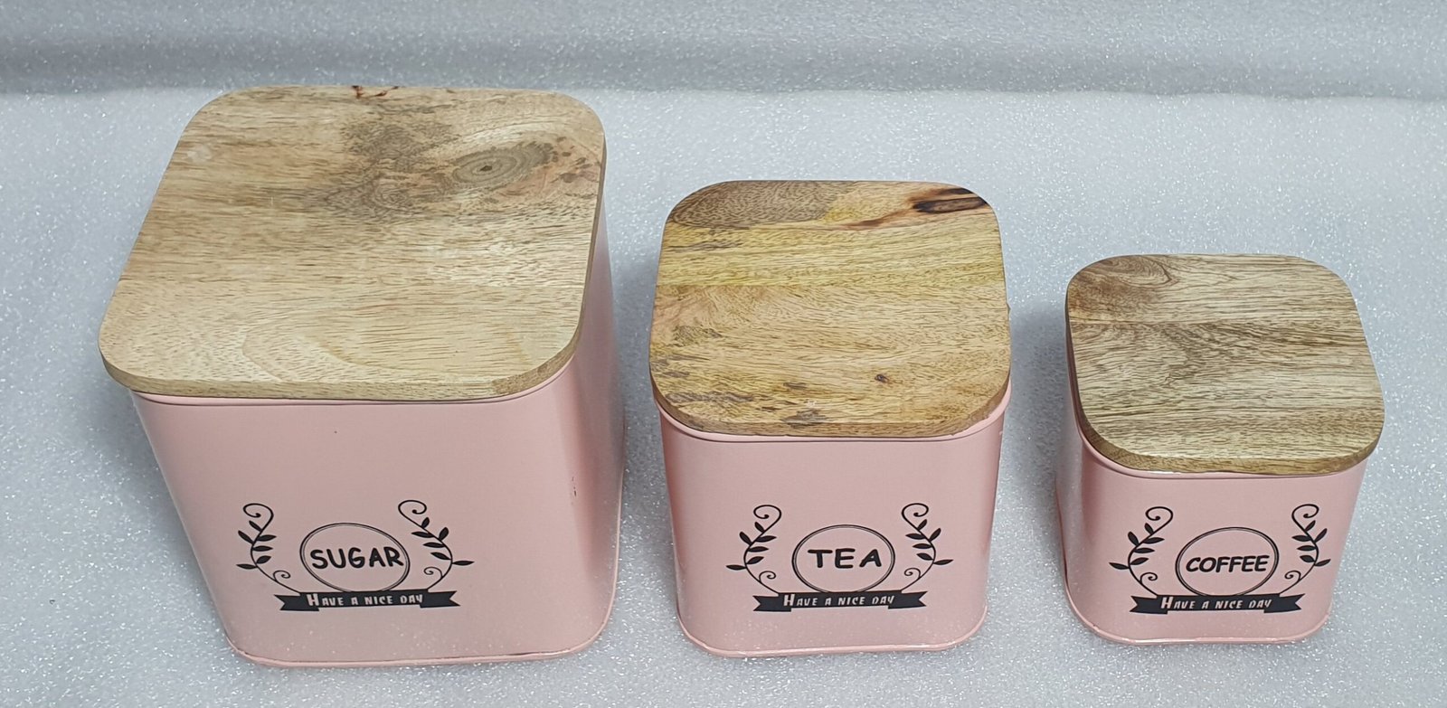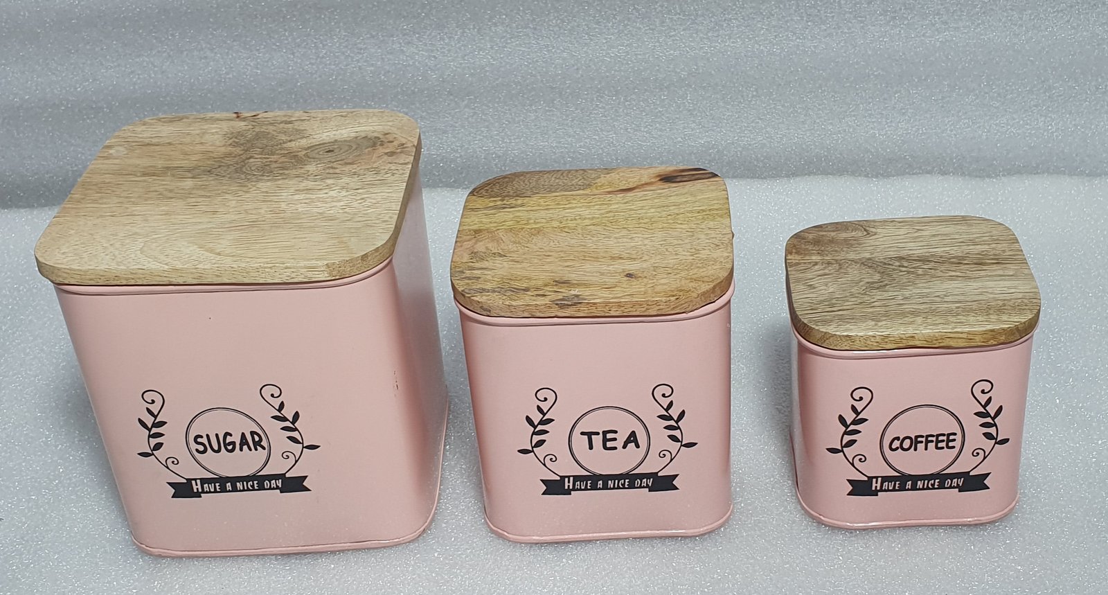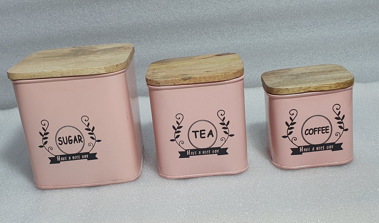 Crafted with a clean and modern design, these canisters come with wooden lids that not only enhance their aesthetic appeal but also help keep the contents fresh and protected. Perfect for storing tea, coffee, sugar, or other dry ingredients, they are a must-have for every kitchen.