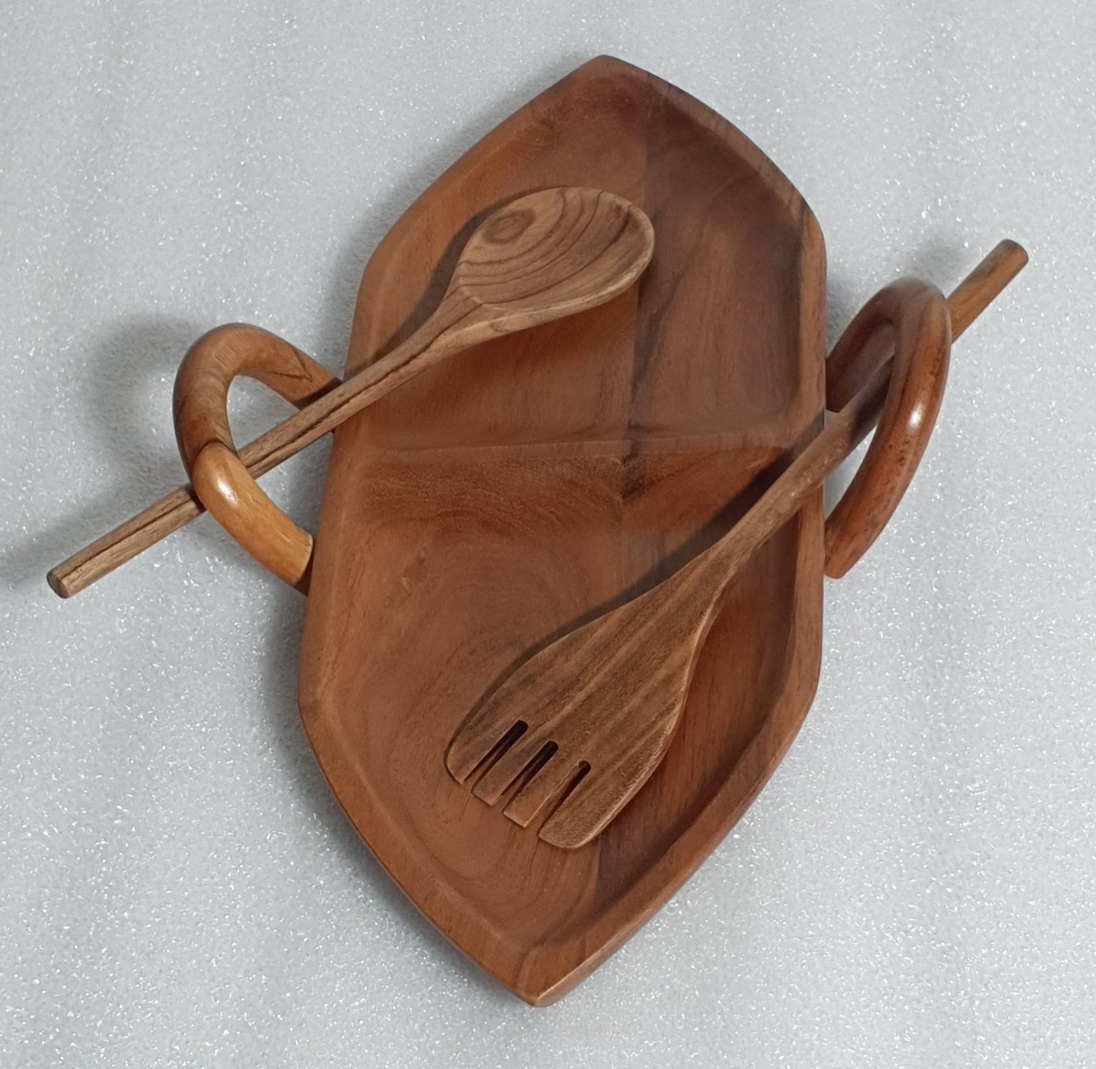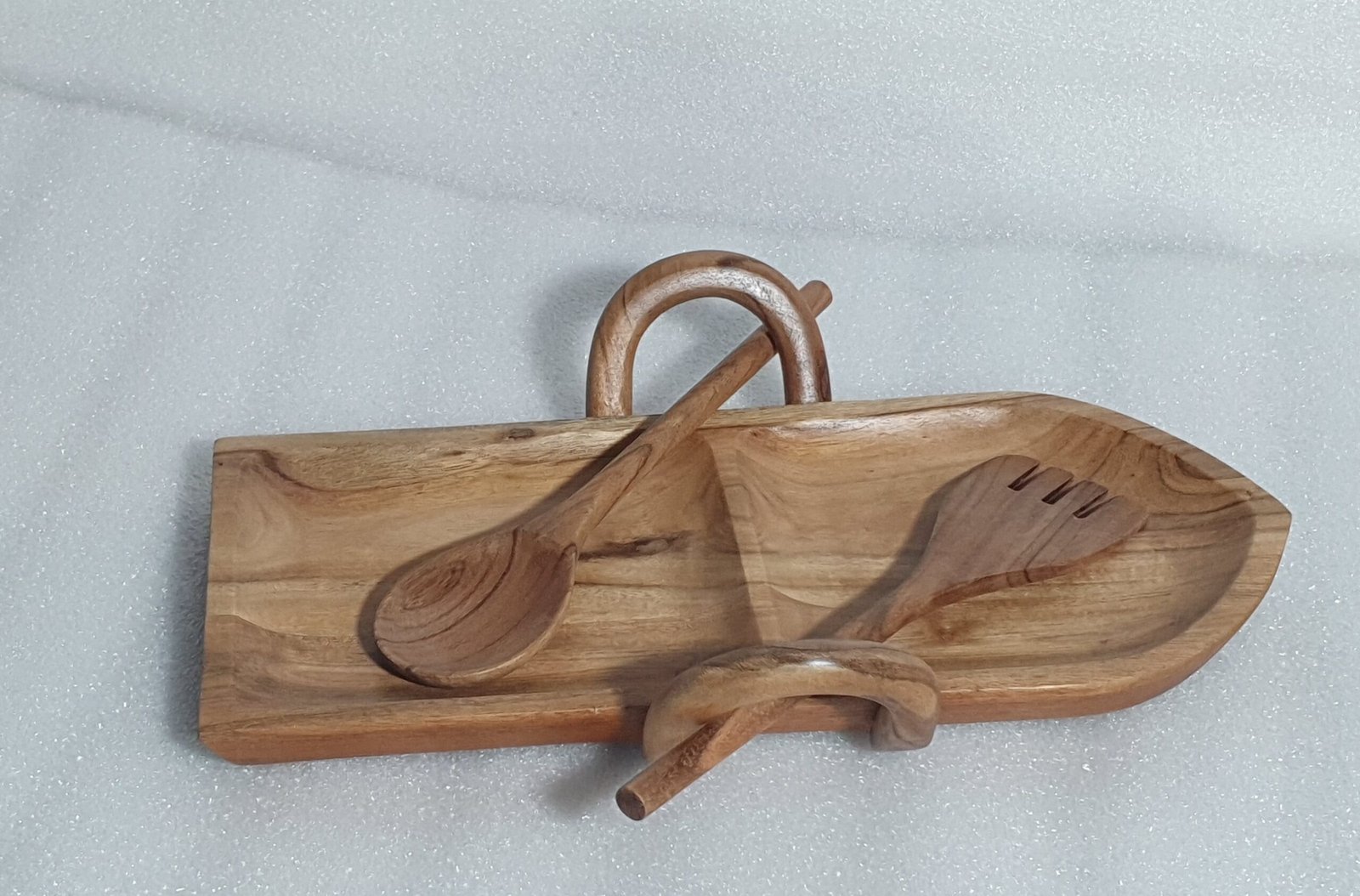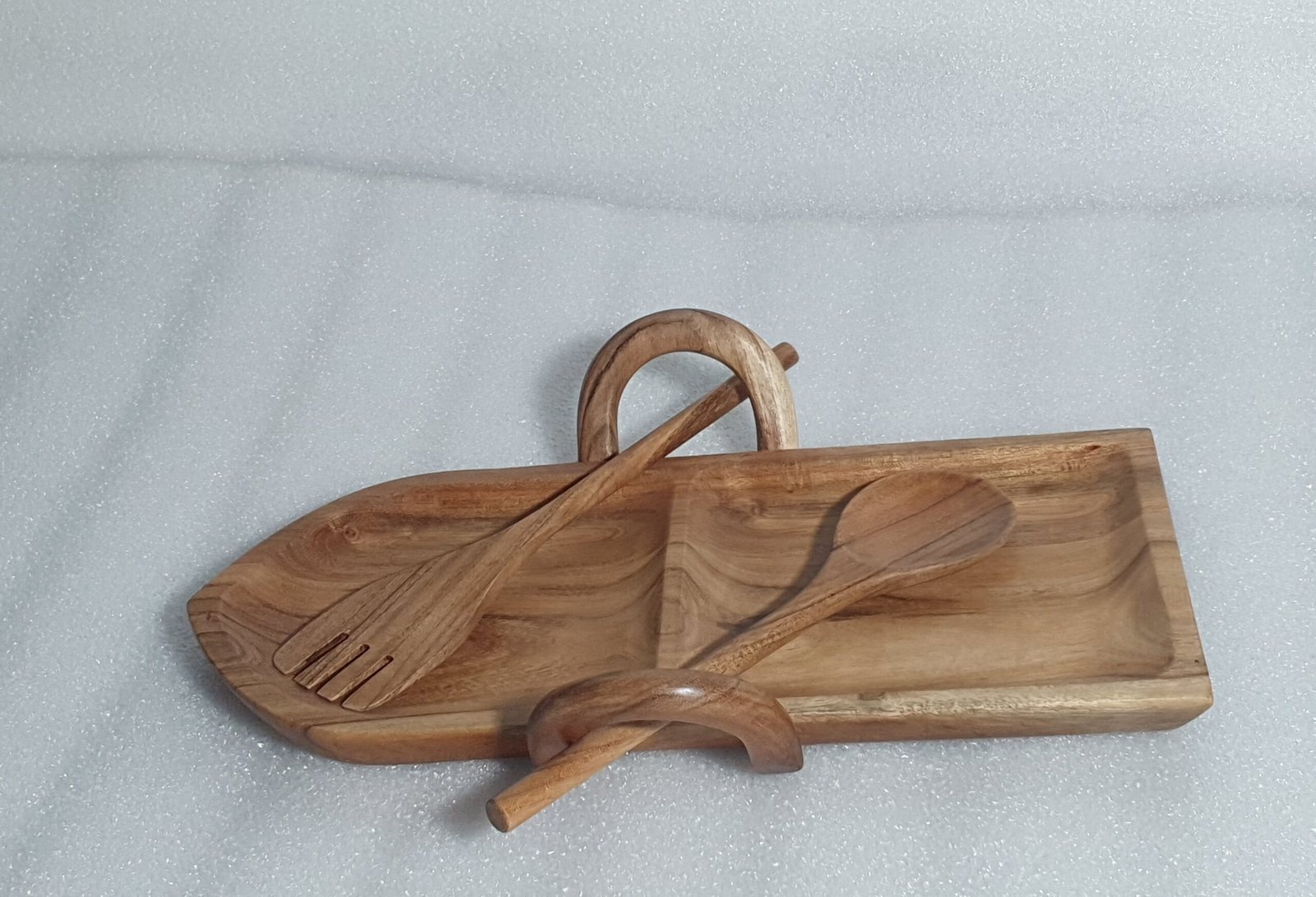 Serve your snacks in a unique and stylish way with this beautifully crafted Wooden Boat Shaped Serving Platter with Spoon & Fork by Goliya Craft & Decor. Designed with a distinctive boat shape, this platter adds a modern yet natural touch to your table presentation.