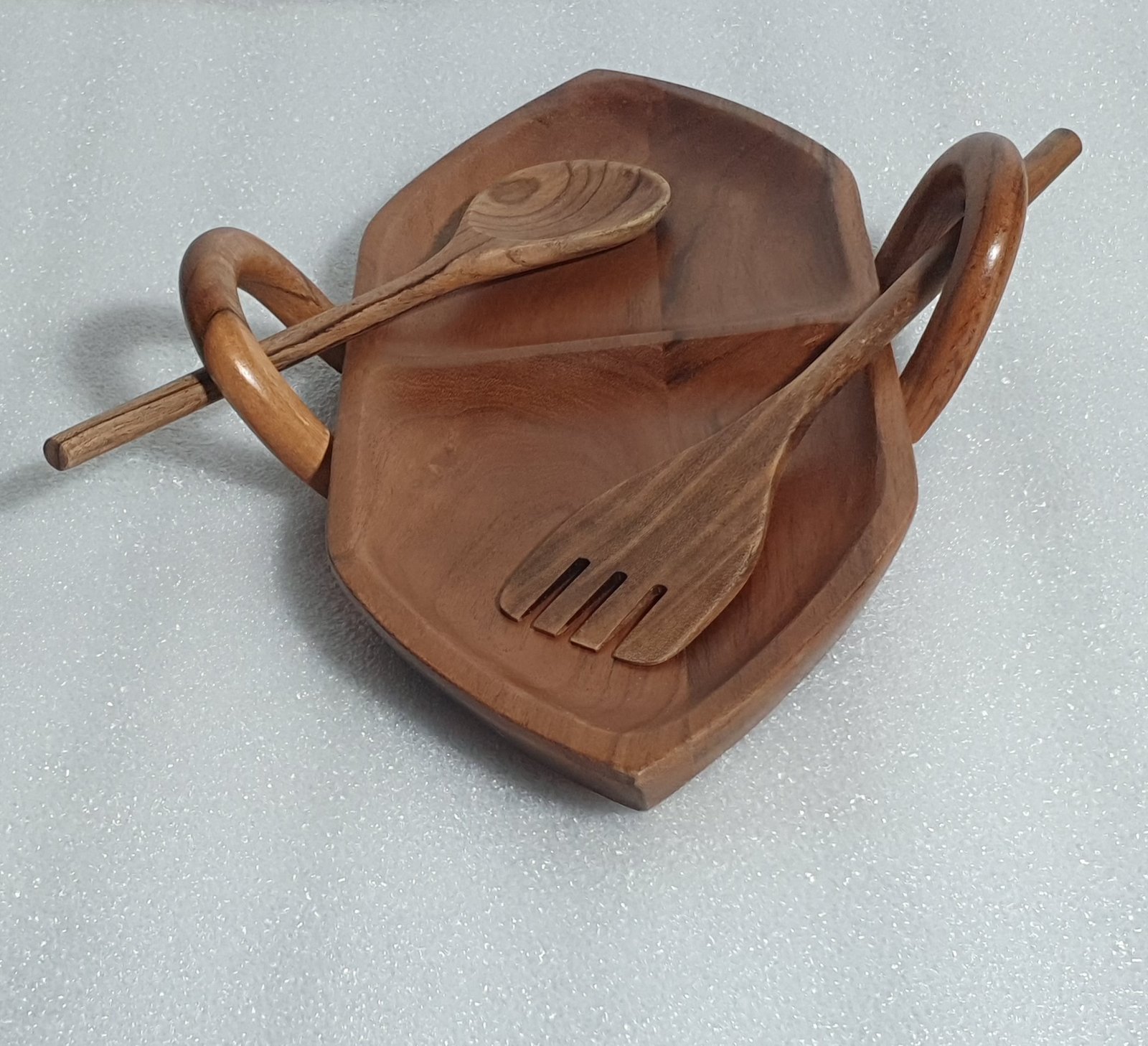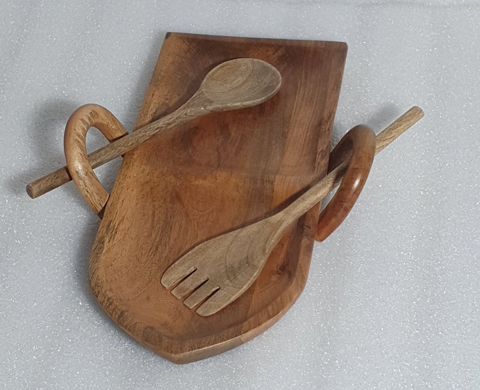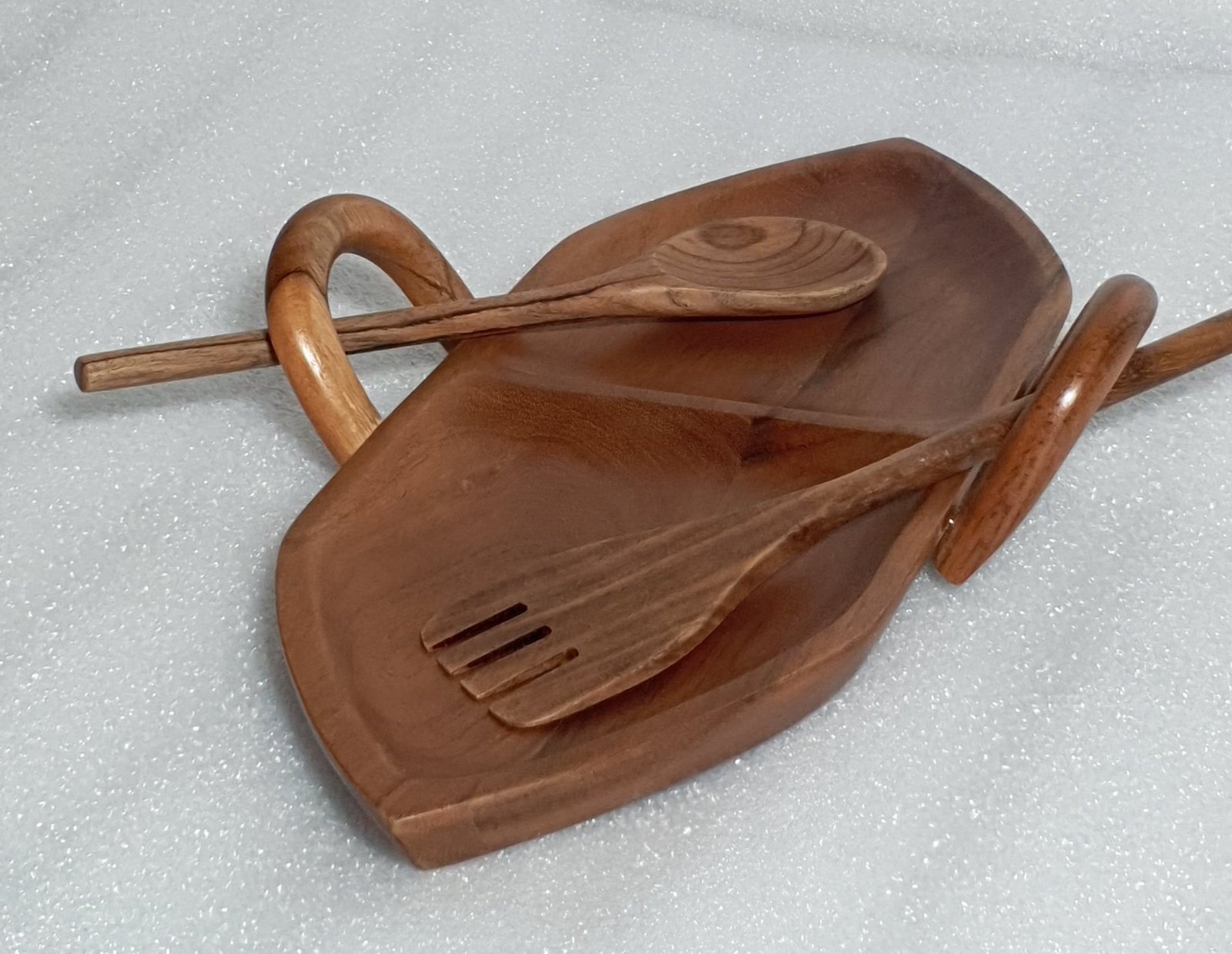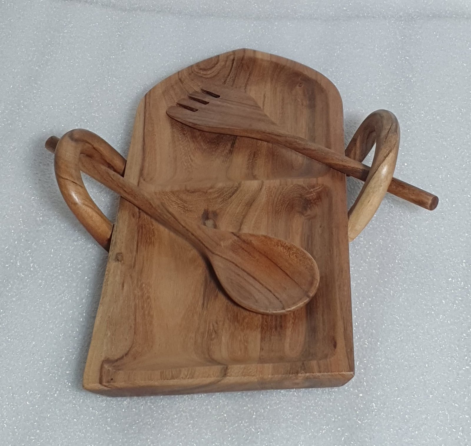 Perfect for serving snacks, dry fruits, starters, and appetizers, this platter enhances the overall dining experience, whether at home, in cafés, or during special gatherings. The included wooden spoon and fork make serving easy and convenient.