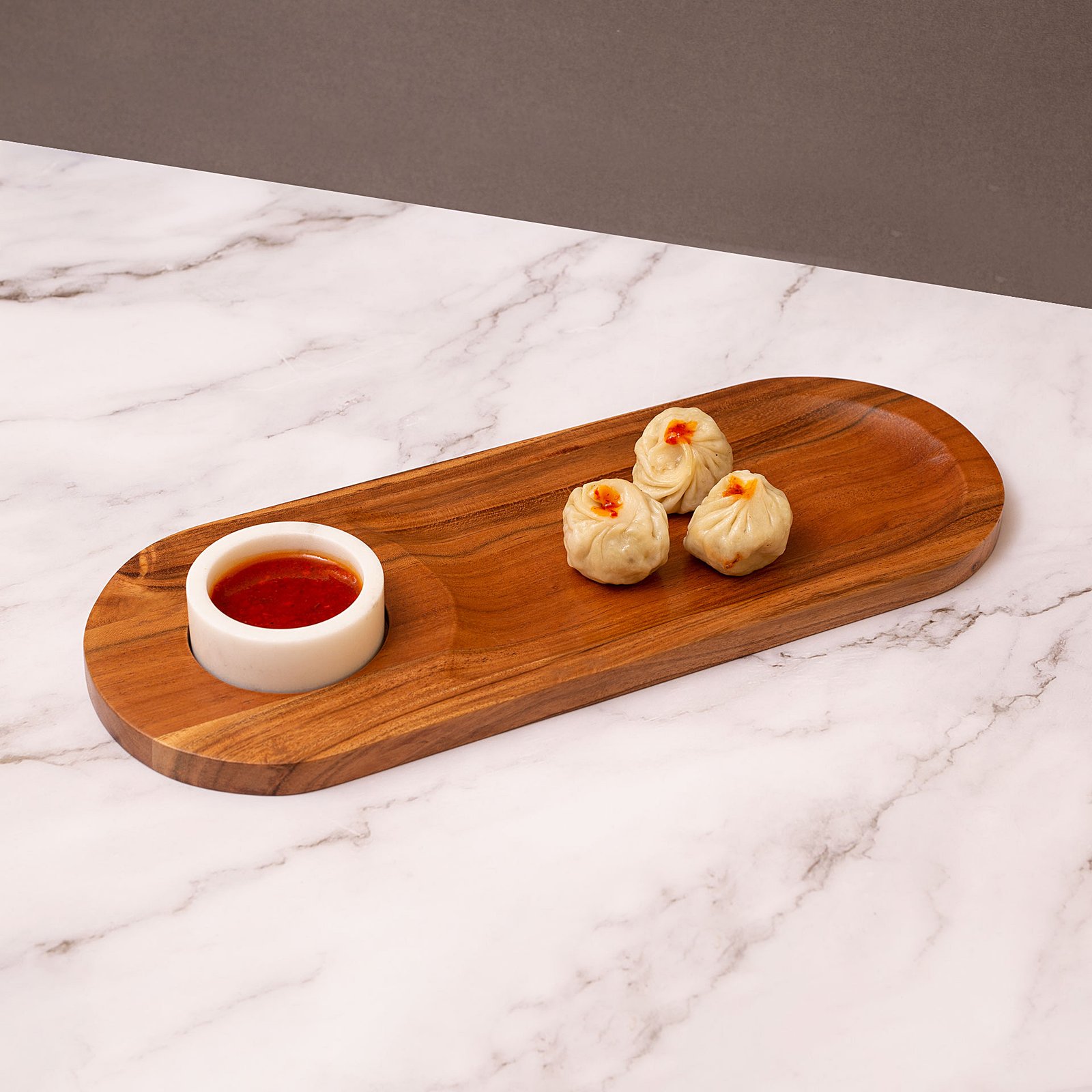 Wood naturally has anti-microbial properties, making it a hygienic choice for food serving. Each piece is handcrafted, so slight variations in grain and color give it a unique and natural appeal.